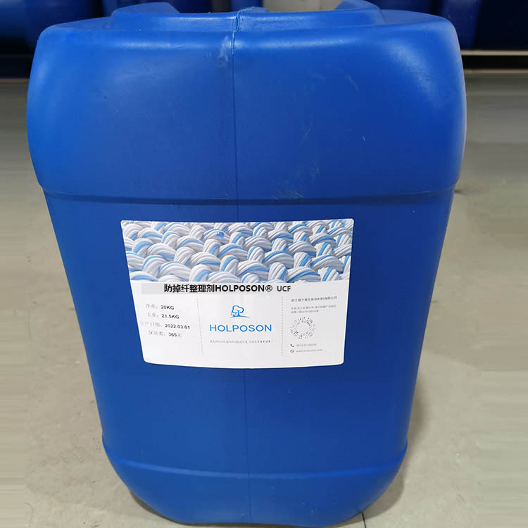 防掉纤整理剂HOLPOSON®UCF是经过技术改性的自交联型丙烯酸树脂,织物经处理后手感柔软,弹性好,富于丰厚柔软的风格。明显提高纺织品整体光洁效果及耐久性,并且对于提高全棉、涤棉、涤纶、尼龙、腈纶等合纤及其混纺针织机织物的抗起球、钩丝性、干湿摩擦牢度也具有优良的效果。