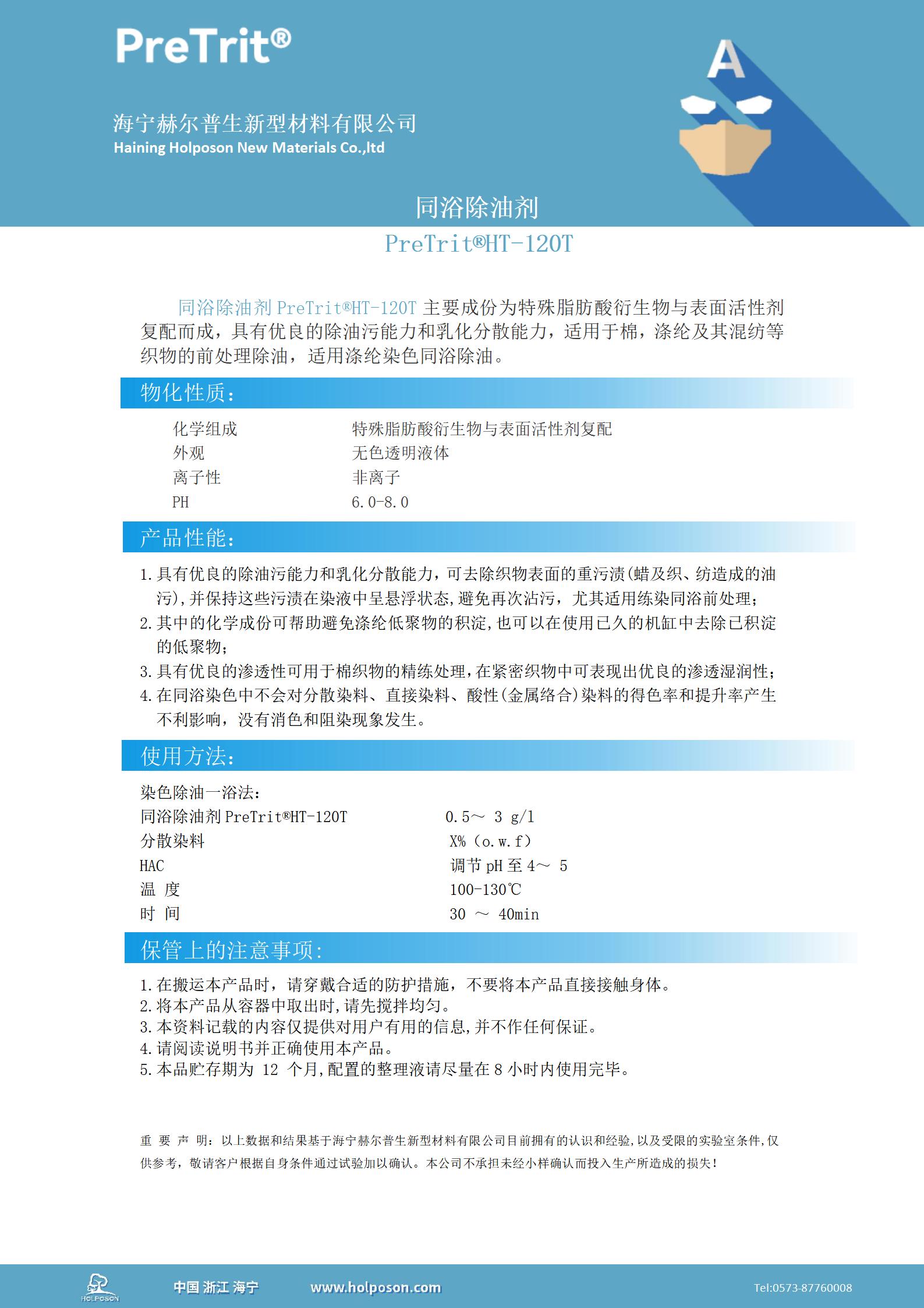 HOLPOSON® Greaseless 即可直接使用,其可以与水:1:5~8倍稀释后使用。 本产品和与阴、非离子药剂以及常规印染加工中使用的助剂均具有良好的相容性。